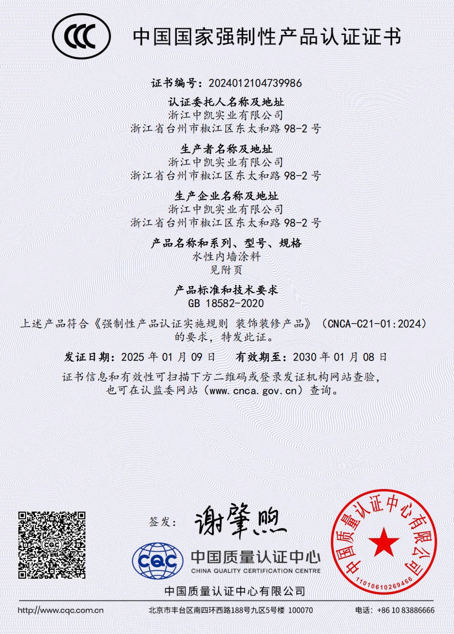 浙江中凱實業(yè)有限公司是一家由美國杜邦涂料化工集團有限公司提供高新技術(shù),與美國杜邦化工集團有限公司授權(quán)在中國生產(chǎn)各種建筑涂料的制造企業(yè)。
